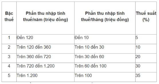 Cụ thể, biểu thuế luỹ tiến từng phần từ 2026 như sau: